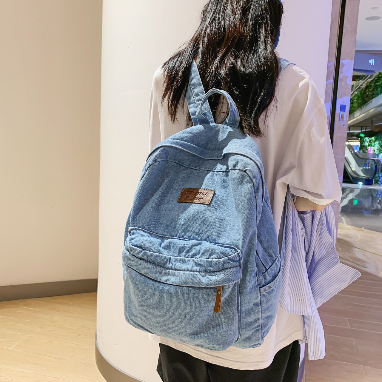 حقيبة مدرسية جديدة لعام 2023 على الموضة للمدرسة الثانوية ذات سعة كبيرة لطلاب المدارس الإعدادية حقيبة ظهر كورية غير رسمية للرجال والنساء من الدنيم