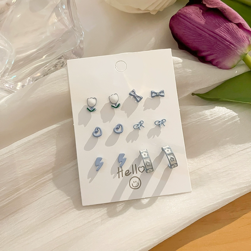 أقراط مسمارية للنساء مجموعة لطيفة من الألوان بإبرة فضية