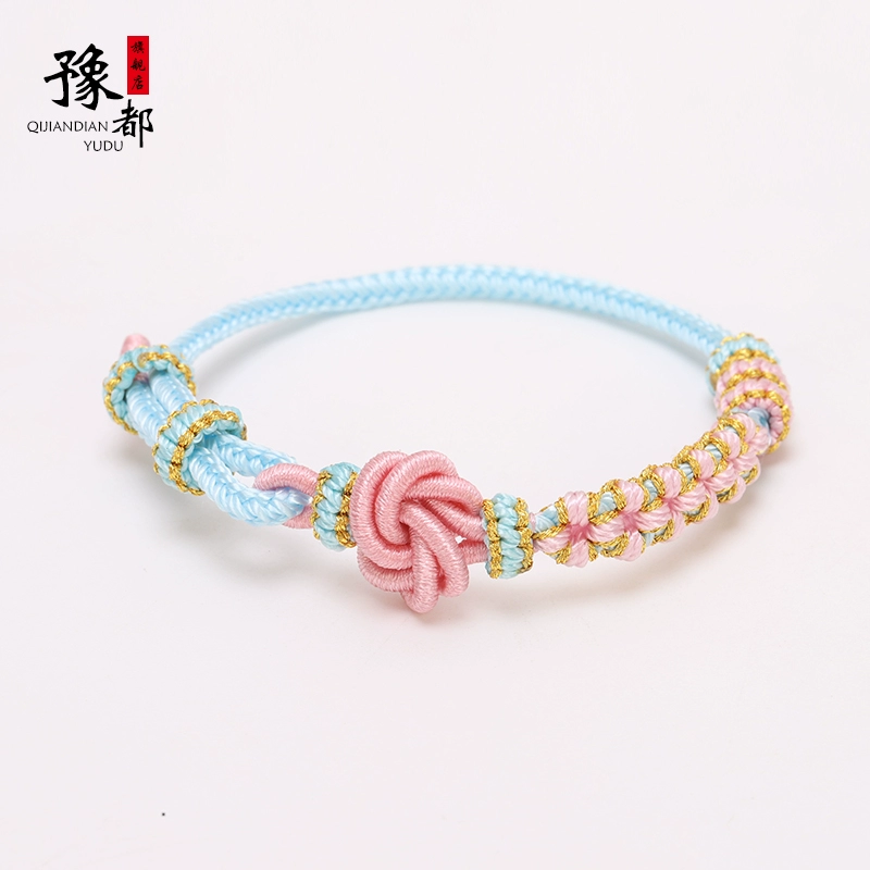 منتج نهائي من حبل أحمر ماندالا للسيدات مع خرز يمكن ارتداؤه وزهر الخوخ الذهبي