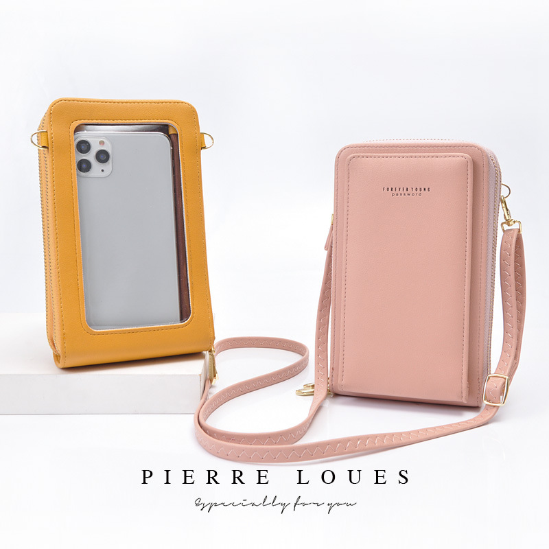 حقيبة سستة جديدة شفافة تعمل باللمس عبر الحدود حقيبة هاتف محمول PU للسيدات حقيبة كتف كاجوال كورية
