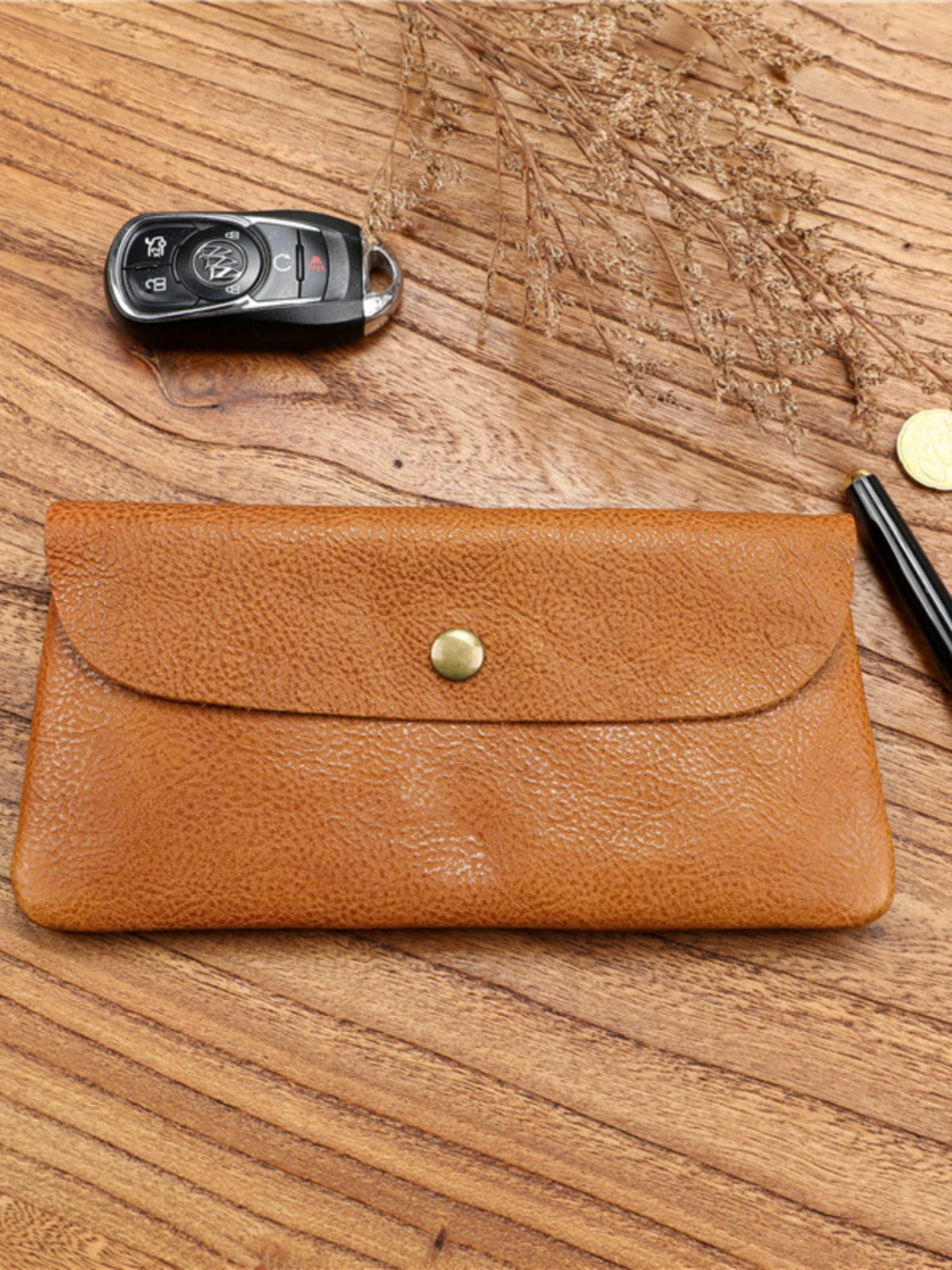 محفظة جلد البقر الطويلة للرجال ، محفظة جلدية رفيعة