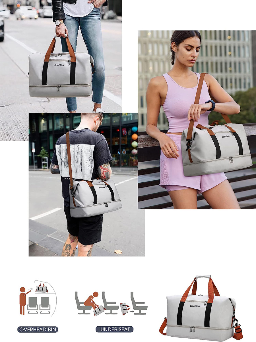 حقيبة سفر للرجال والنساء من قماش أكسفورد، حقيبة أمتعة محمولة لمسافات قصيرة، سعة كبيرة، خفيفة الوزن، منفصلة للرطب والجاف، حقيبة لياقة بدنية رياضية