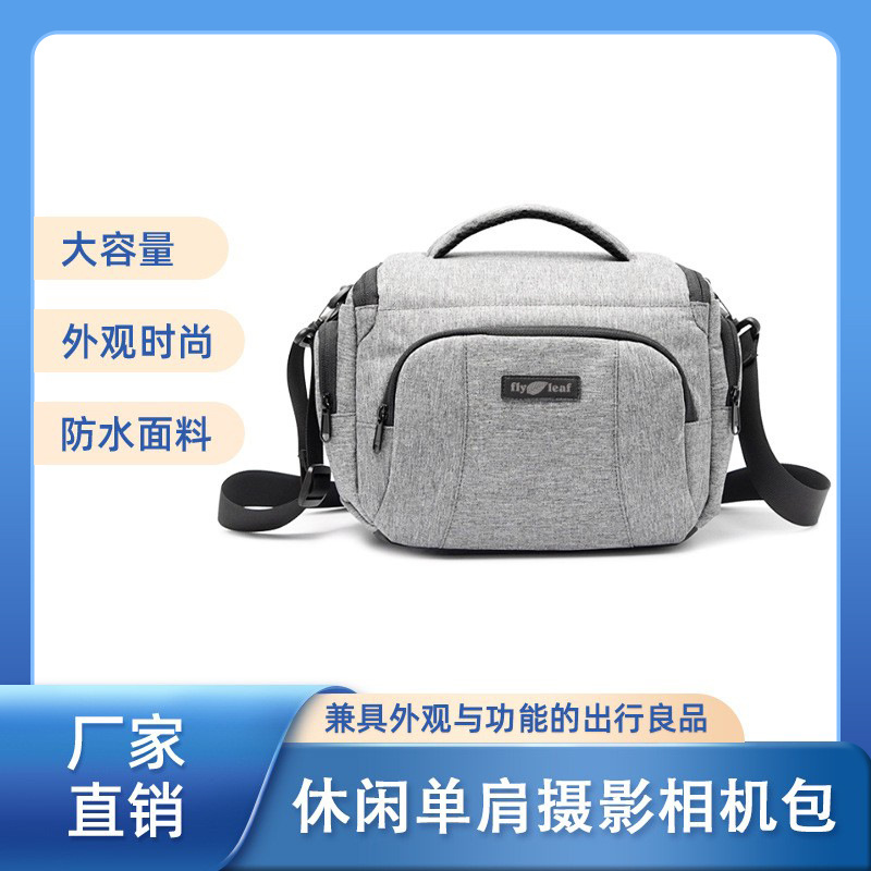 حقيبة كاميرا بكتف واحد من Flying Leaf، حقيبة تصوير بسيطة، رسم عينة، تصميم بالجملة، حقيبة كتف رمادية بكتف واحد من Canon