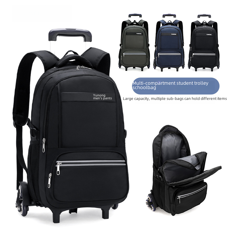 حقيبة مدرسية لعربة الأسماك الطبيعية من قطعة واحدة ذات سعة كبيرة وستة عجلات سلم حقيبة ظهر للطلاب في المدارس الابتدائية والثانوية شعار قابل للطباعة