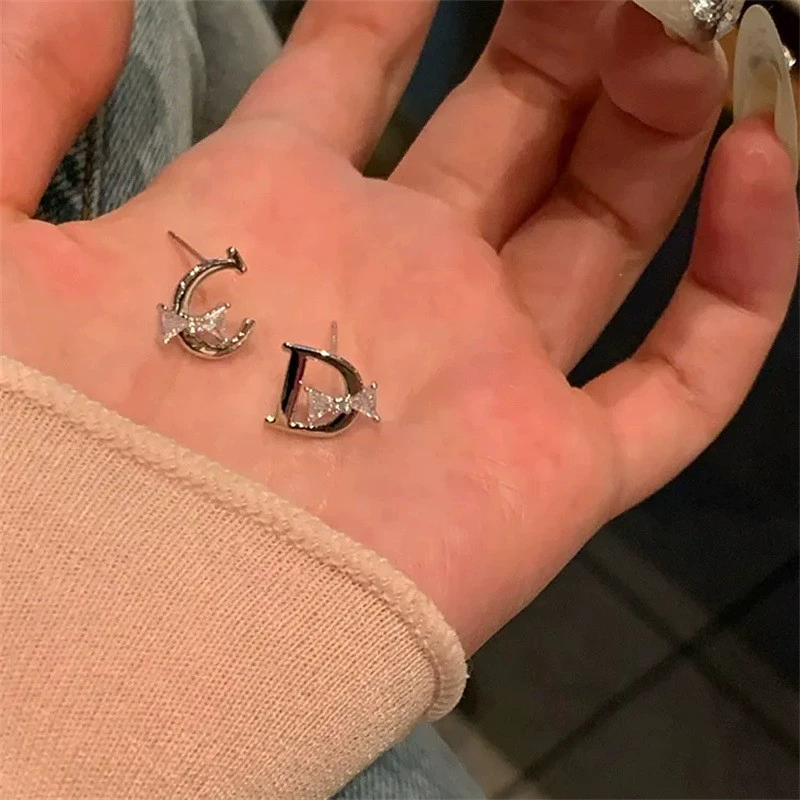 أقراط مرصعة بحجر الراين بحروف متخصصة بتصميم فيونكة مثيرة للنساء
