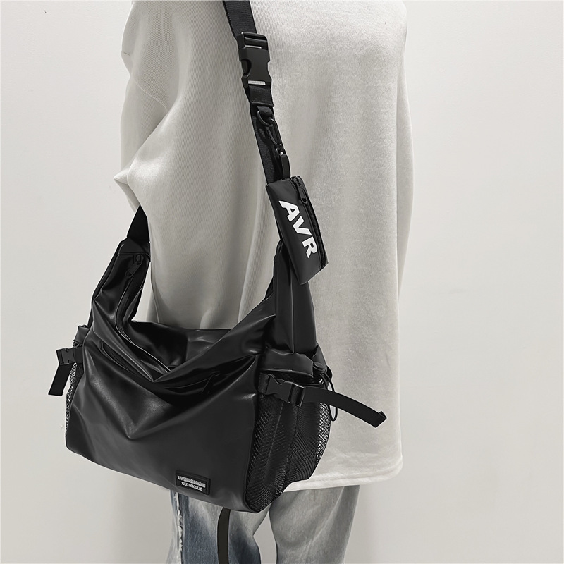 حقيبة PU للرجال والنساء حقيبة ساعي البريد بسعة كبيرة على الطراز الياباني القديم حقيبة كتف للرجال كاجوال بسيطة للبيع بالجملة