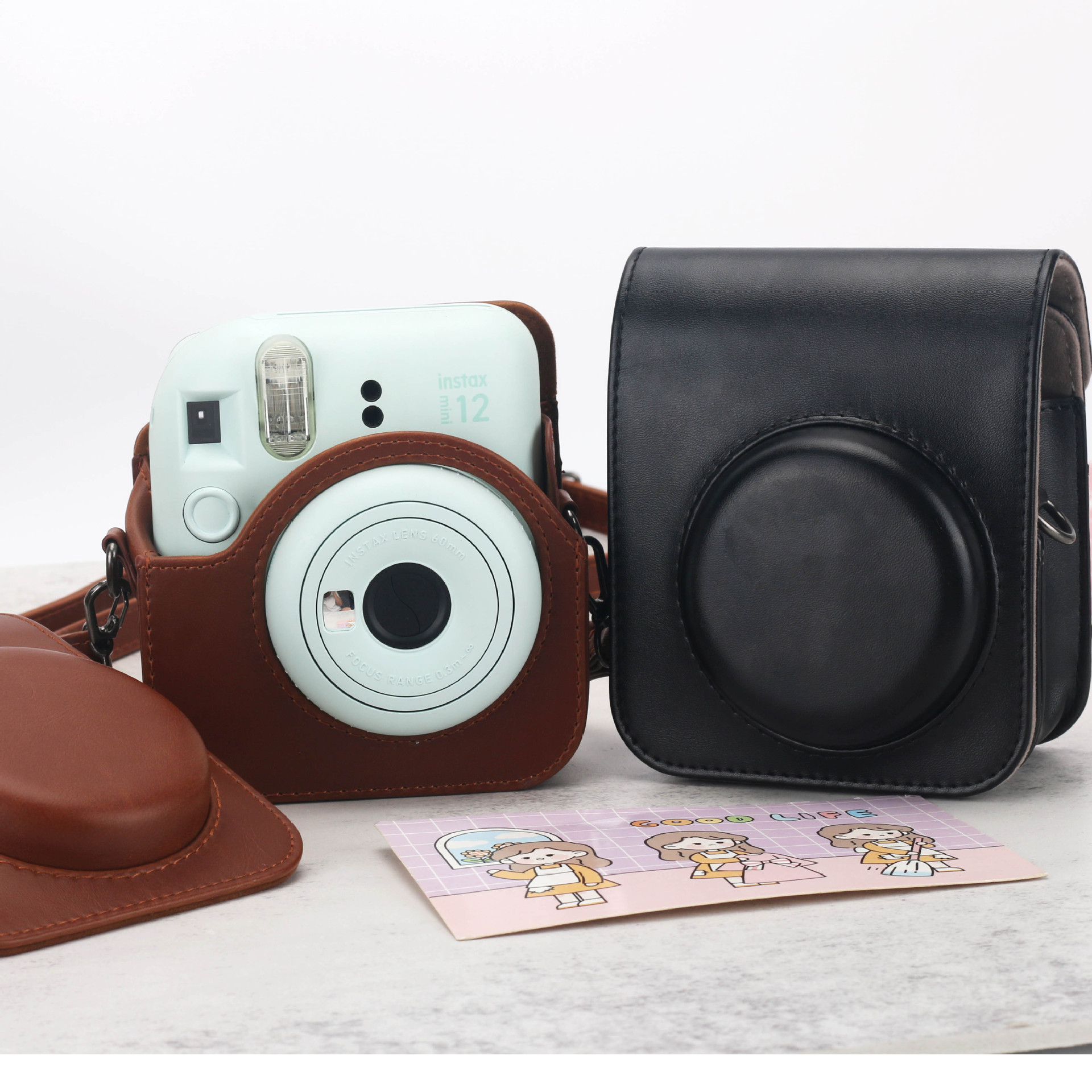 حقيبة بولارويد ميني 12 الخاصة لتخزين الكاميرا باللون الأسود والبني، وحقيبة خلفية للصور، وبسيطة ومتوافقة تمامًا