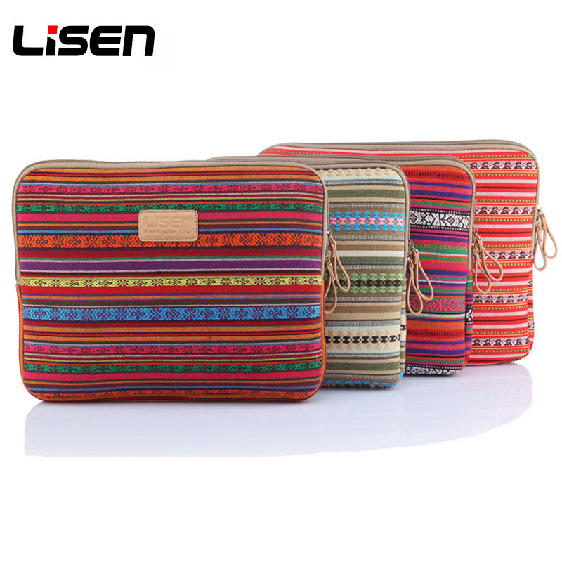 حقيبة بطانة للكمبيوتر المحمول مخططة على الطراز العرقي من LISEN مقاس 10/11/13/14/15.6 بوصة حقيبة كمبيوتر وحقيبة كمبيوتر لوحي
