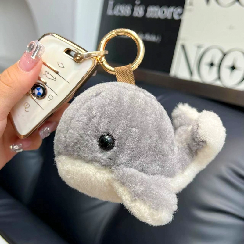 لطيف الحوت الصغير سلسلة مفاتيح سيارة دمية صوف حقيقية