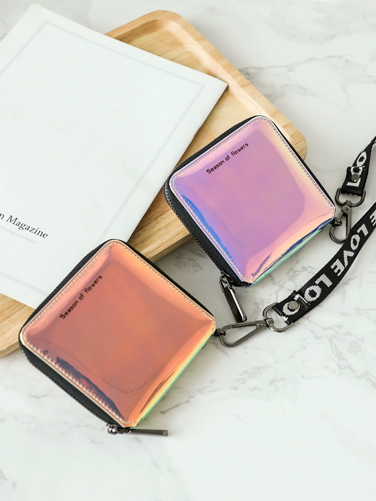 محفظة Miyin ليزر للسيدات ذات طراز قصير وقابلة للطي على الطراز الكوري وشخصية بسيطة وسعة كبيرة ومحفظة بسحاب للطلاب