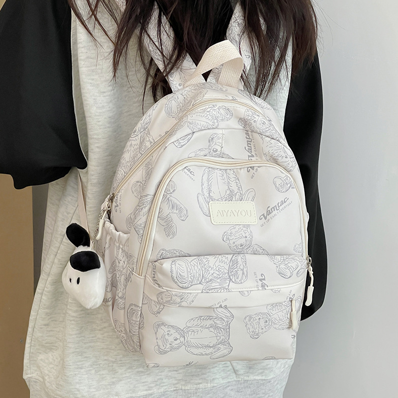 Japanese Ins Casual Small Backpack Lightweight All-match Schoolbag Bear Printed Backpack for Junior High School Students and High School Students for Women