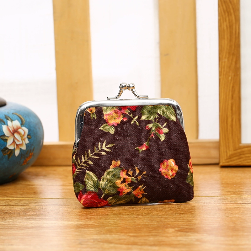 القماش الرجعية محفظة صغيرة وردة طباعة كيس العملة المعدنية المعادن إخفاء الإبزيم القصيرة الرائعة