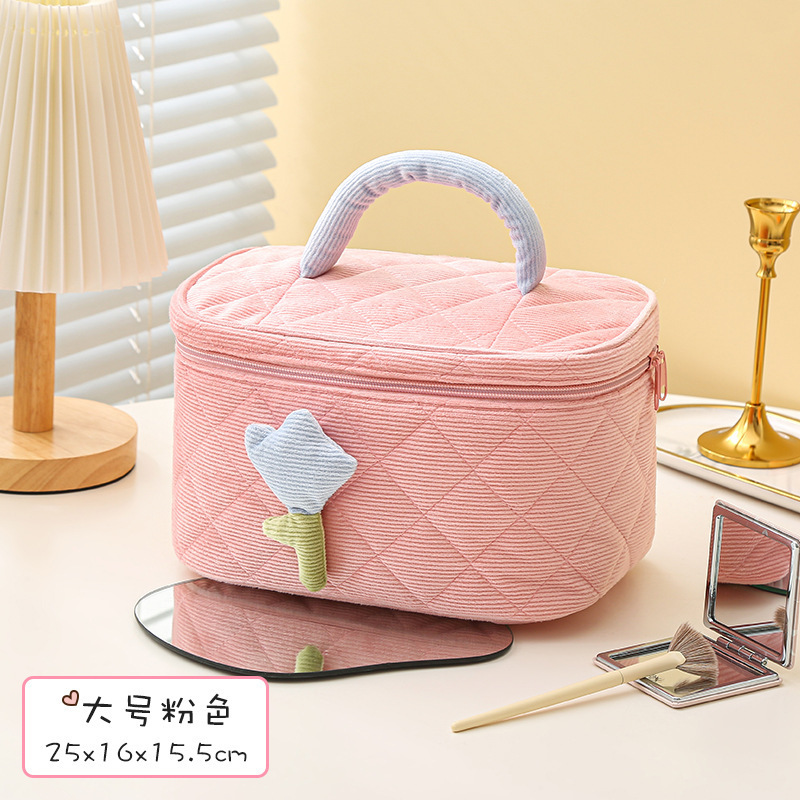2024 تصميم أصلي جديد حقيبة مستحضرات تجميل صغيرة طازجة ذات سعة كبيرة حقيبة تخزين للسفر باليد بسيطة ومحمولة