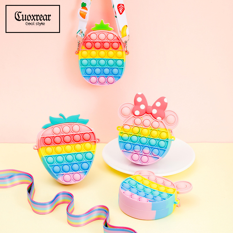 2022 جديد قوس قزح الصحافة الموسيقى Crossbody محفظة نسائية للعملات المعدنية الفتاة لغز الضغط قطعة أثرية لطيف قرصة الموسيقى حقيبة كتف