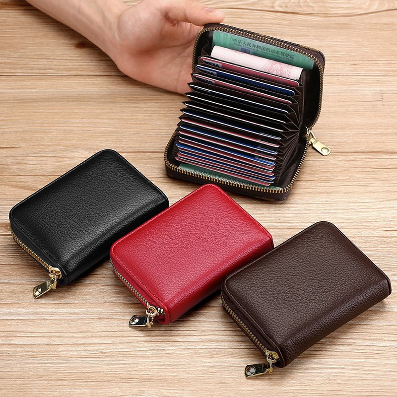 حقيبة بطاقات مضادة للمغنطة للرجال والنساء بسحاب متعدد البطاقات وحامل بطاقات الهوية البنكية سعة كبيرة ورخصة القيادة وبطاقة صغيرة للأموال