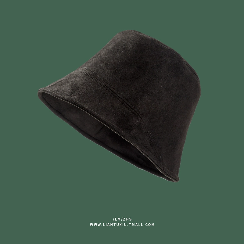 قبعة دلو نسائية يابانية على الطراز الكوري عصرية للخريف والشتاء من الجلد السويدي