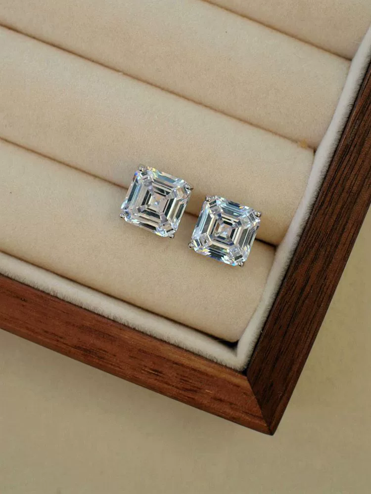 Asscher Pagoda Sugar Cube مويسانيتي إبرة من الفضة الاسترليني الفاخرة