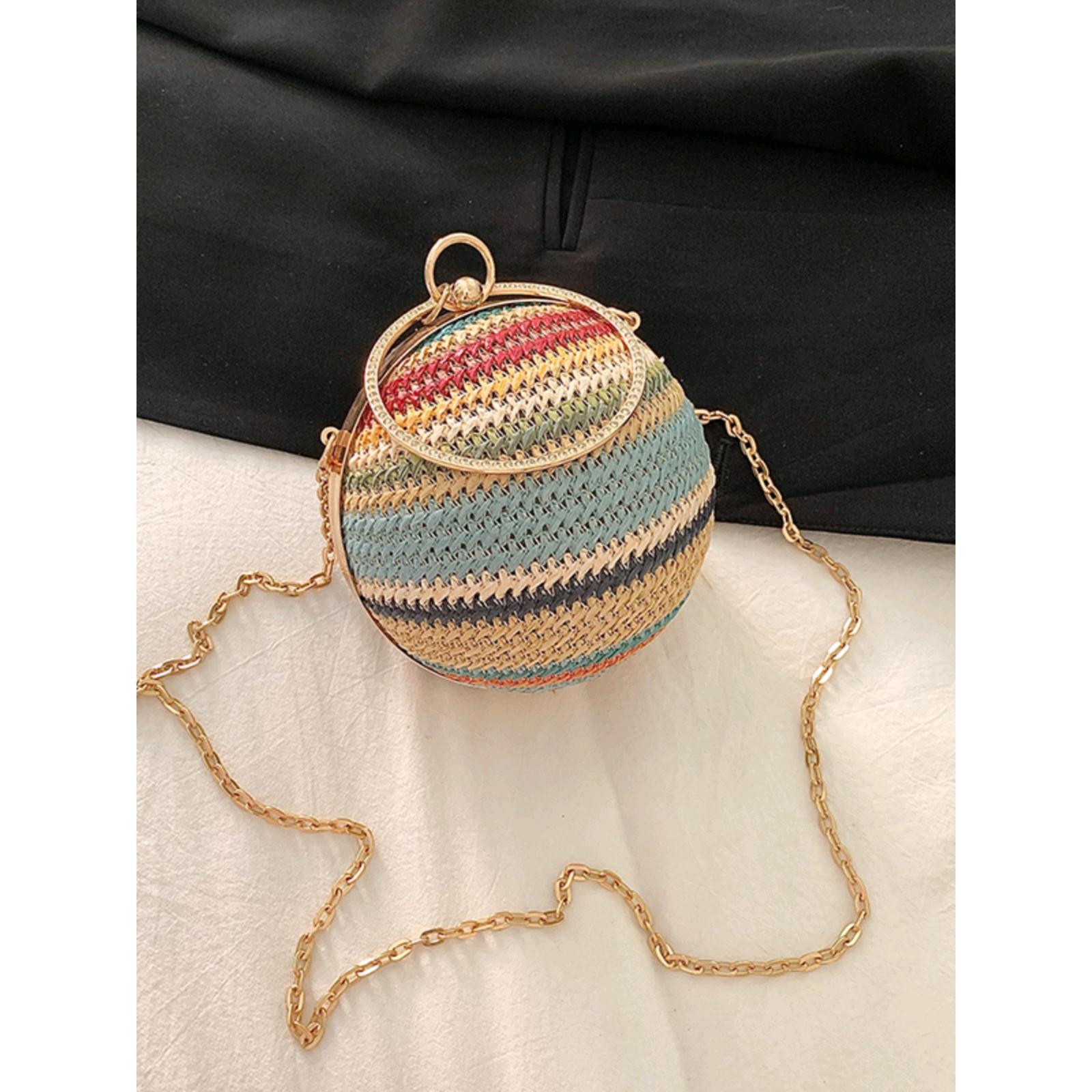 Xiaozhong تصميم فريد من نوعه حقيبة كروية مستديرة حقيبة صغيرة مستديرة حقيبة صغيرة حمراء حقيبة تغيير سماعة الرأس حقيبة كروس منسوجة