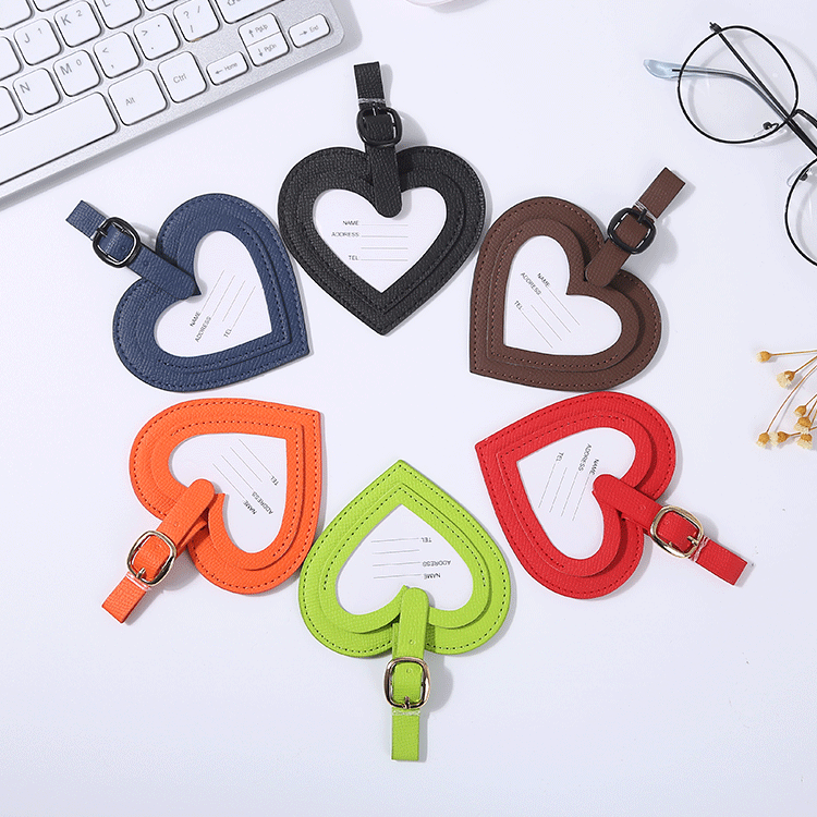 في المخزون، حقيبة PU على شكل قلب الحب ملونة، مضادة للضياع، بطاقة أمتعة بسيطة، قائمة شحنة، مبيعات المصنع مباشرة