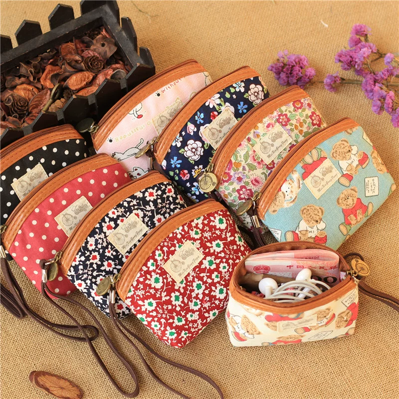 واحد -layer Zipper Coin التعبئة التعبئة والتغليف placement بطاقة بطاقة بطاقة بطاقة عملة عملة تخزين صغيرة حقيبة القماش الفتاة مصغرة حقيبة يد