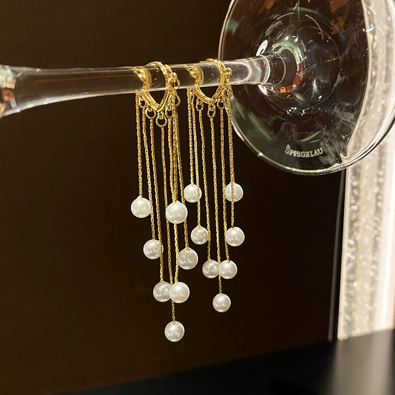 أقراط أنيقة من الفضة الإسترليني عيار 925 متعددة الشرابة للنساء مرصعة باللؤلؤ