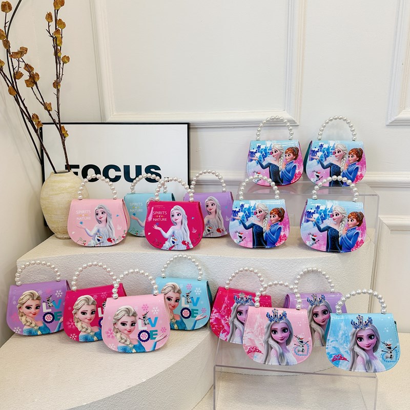 حقيبة كتف للأطفال بتصميم كرتوني للفتيات الصغيرات عائشة، حقيبة يد صغيرة على شكل أميرة الجليد والثلج واللؤلؤ