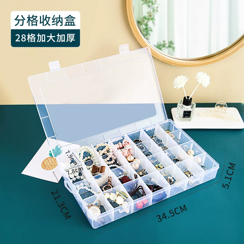 صندوق مجوهرات منزلي بلاستيكي متعدد الشبكات بطبقة واحدة مع غطاء وأقراط