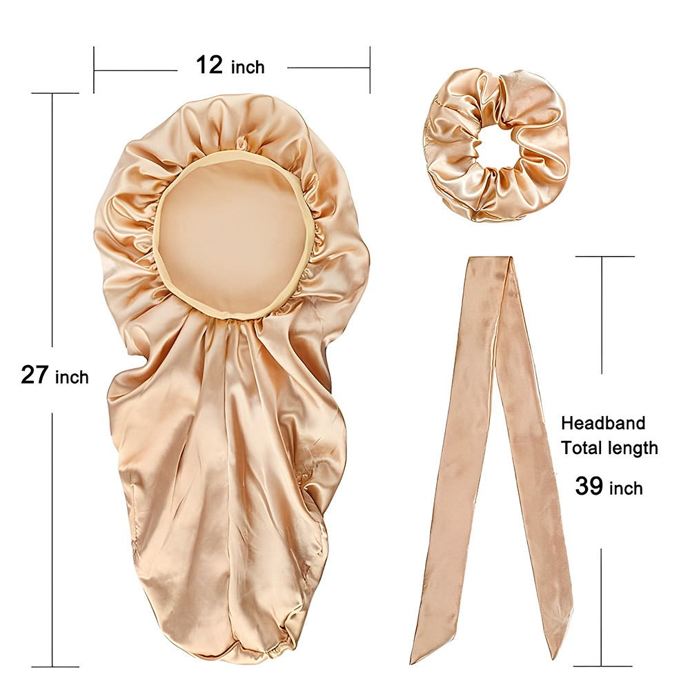 انفجارات أمازون وتر مطاطي واسع اللون دينغ للعناية بالشعر أنبوب طويل قبعة النوم عصابة رأس قبعة منزلية مجموعة من ثلاث قطع متوفرة في المخزون قبعة نوم طويلة الذيل