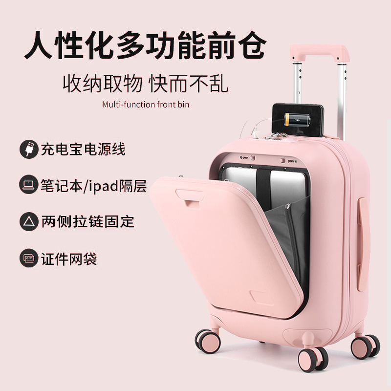 حقيبة أمتعة بفتحة أمامية للتجارة الخارجية للسيدات جديدة مقاس 20 بوصة حقيبة صعود صغيرة بقضيب سحب واسع متعددة الوظائف حقيبة ذات جودة عالية