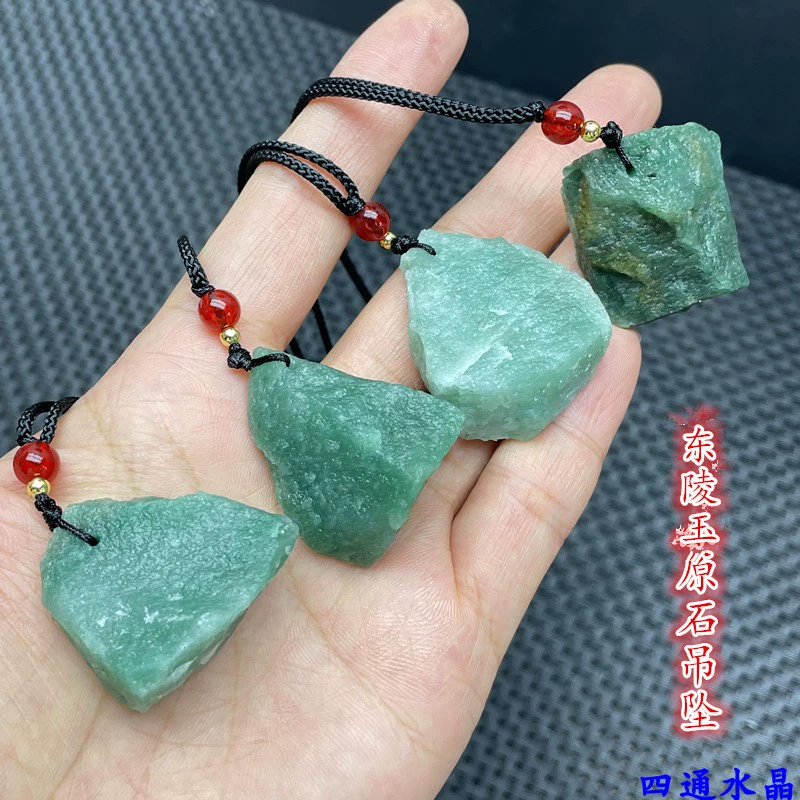 مسحوق أبيض من الحجر الخام قلادة معدنية تعليمية DIY كريستال أخضر