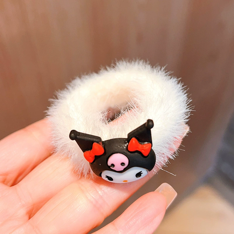 رباط شعر للأطفال من القطيفة اللطيفة للغاية من سانريو للخريف والشتاء، حبل شعر لطيف على شكل كلب القرفة للفتيات، عصابة رأس مطاطية حلوة من لوت