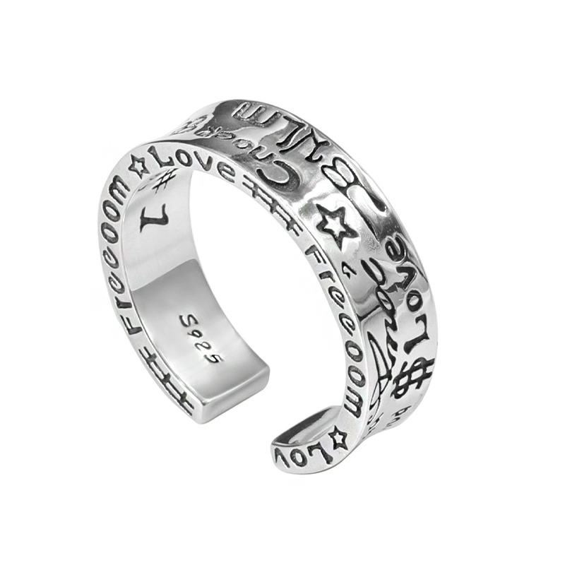 GRGR خاتم الحب الحرية من الفضة الإسترليني الهيب هوب كتابات