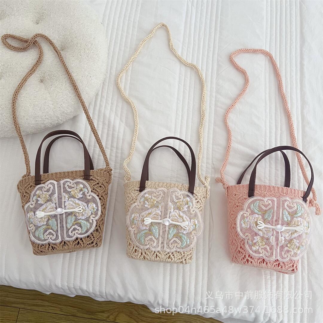 حقيبة كتف للأطفال على الموضة الوطنية على الطراز الغربي من الدانتيل حقيبة يد بنمط شفاف للفتيات والأطفال حقيبة كروس محبوكة على شكل مقعر