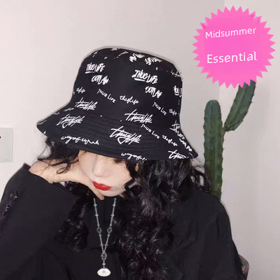 قبعة نسائية على الطراز الكوري مطبوعة بحروف مطرزة قبعة صياد السمك على الطراز الياباني كاجوال مناسبة لجميع المناسبات على الوجهين قبعة حوض للشمس للرجال