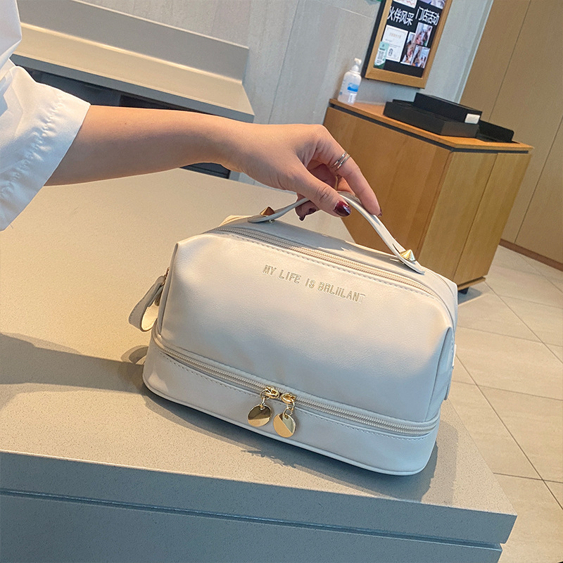 2024 جديد بولي Leather جلد بسيط مقاوم للماء أدوات الزينة المحمولة حقيبة مستحضرات التجميل السفر التقسيم الضروري للعناية بالبشرة حقيبة التخزين