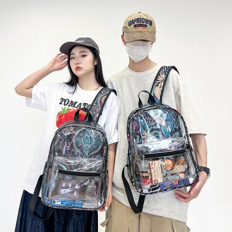 حقيبة ظهر شفافة PVC عبر الحدود حقيبة مدرسية مخصصة على الجدران للرجال والنساء PVC حقيبة جيلي مقاومة للماء حقيبة سفر للشاطئ