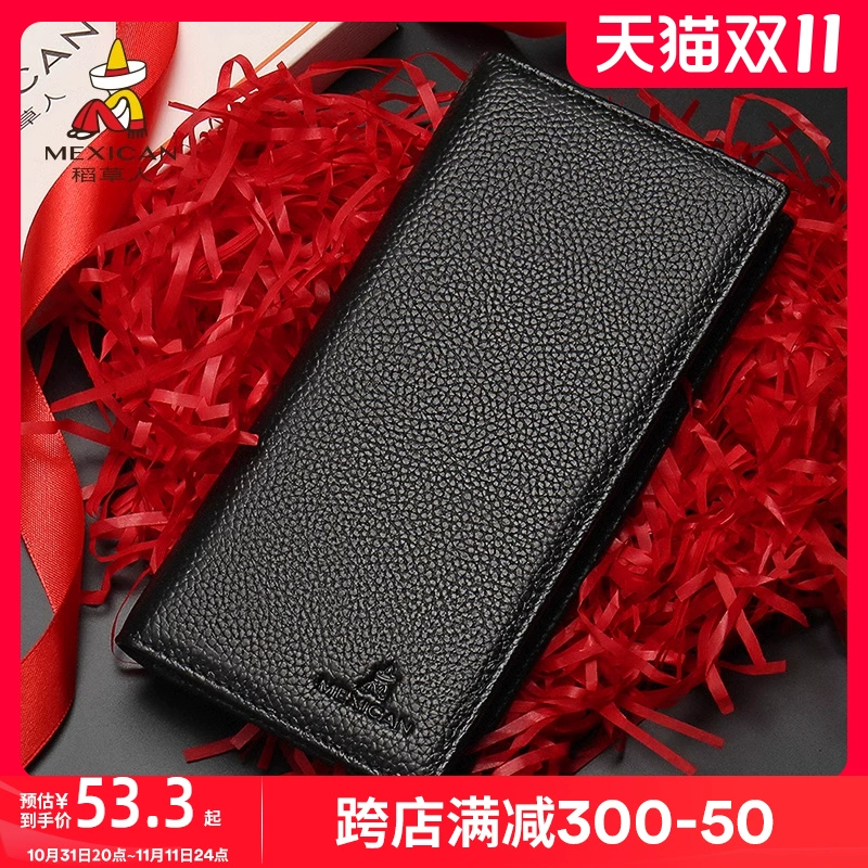 [الفزاعة] محفظة طويلة للرجال من جلد الأعمال ذات سعة كبيرة، مشبك تذكرة متعدد البطاقات للشباب، مشبك جلدي غير رسمي