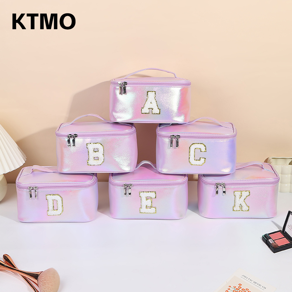 سحر اللون عالية القيمة حقيبة أدوات الزينة Ins الكورية نمط الليزر المطرزة رسالة سعة كبيرة سستة مخزن للمكياج حقيبة مع غطاء