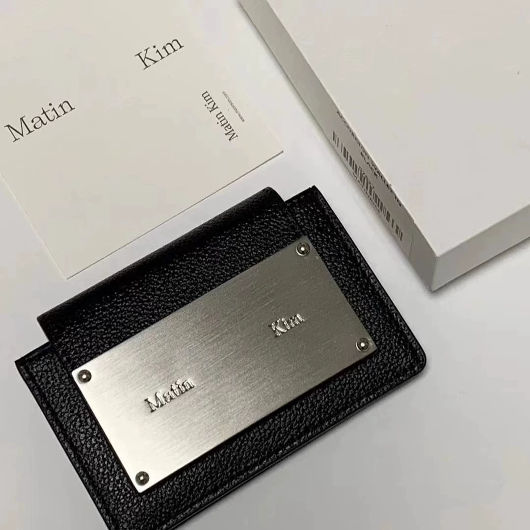 محفظة بطاقات عملية صغيرة وبسيطة وبسيطة من الجلد بلون سادة من العلامة التجارية الكورية MATINKIM