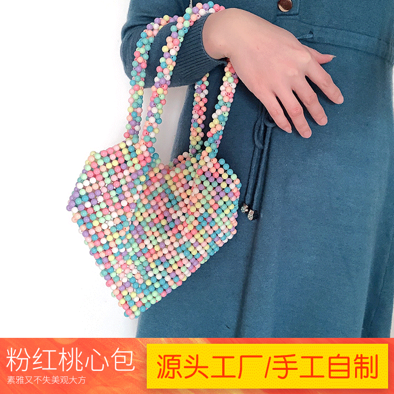 المصنع مباشرة توريد اللؤلؤ الحب سلسلة حبة حقيبة الحب المحمولة حقيبة اليدوية متعددة الألوان اللؤلؤ الصغيرة الجنية على شكل قلب