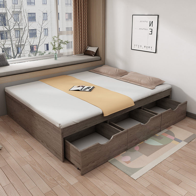 سرير تاتامي بسيط وحديث للتخزين، صندوق مرتفع، تخزين فردي مزدوج، شقة صغيرة، سرير غير بجانب السرير، سرير منخفض بدون مسند للظهر
