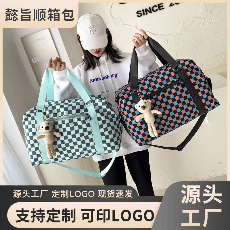 حقيبة سفر جديدة منقوشة ذات سعة كبيرة، حقيبة لياقة بدنية محمولة بألوان متباينة، حقيبة أمتعة على شكل قضيب
