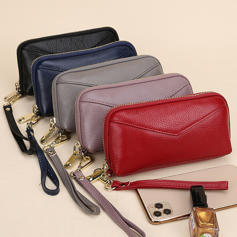 محفظة نسائية لعام 2024 طويلة جديدة حقيقية واحدة مزدوجة مزدوجة حزمة سحاب واحدة سلامة الفتيات الأيدي المشبك