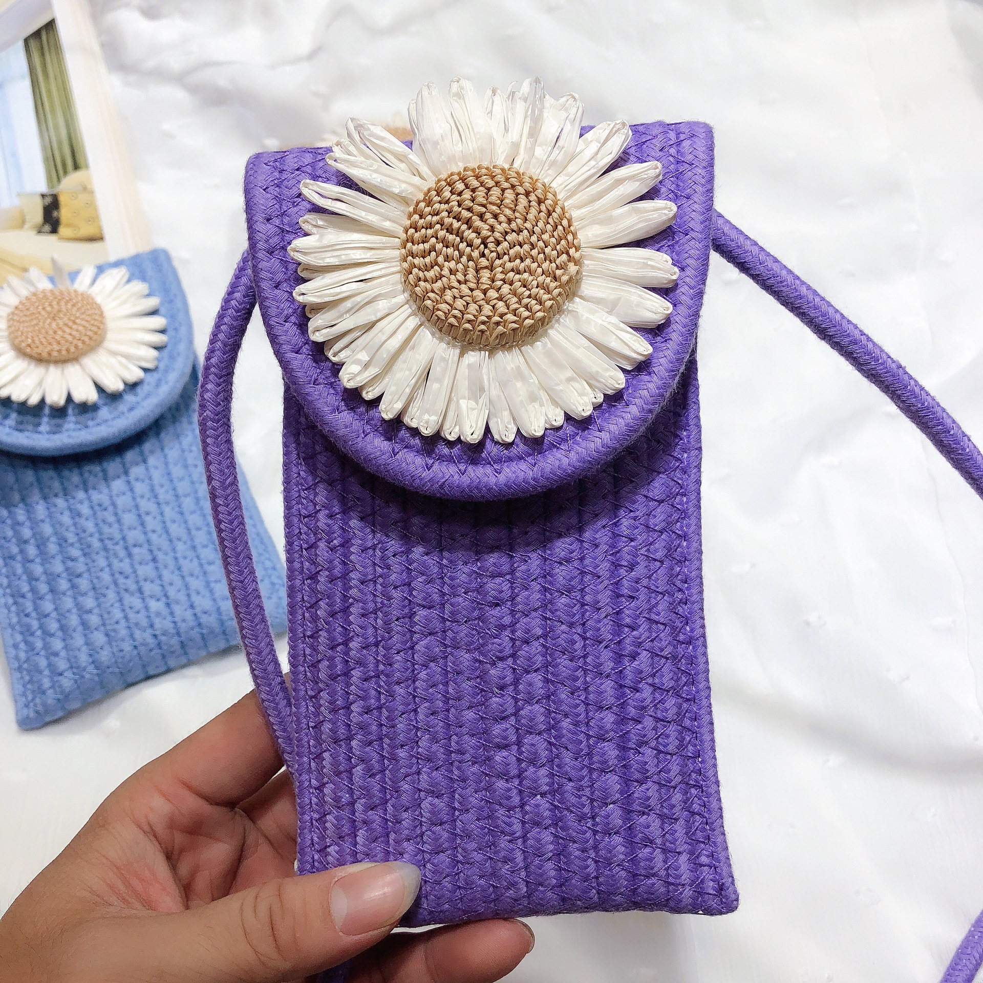 حقيبة هاتف محمول منسوجة يدويًا 2022 صيف جديد زهور الأقحوان محفظة صغيرة صغيرة على الكتف عبر الجسم
