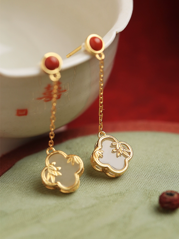 أقراط Little Silversmith Yazhunu Jade ذات الطراز القديم من الذهب عيار 18 قيراط