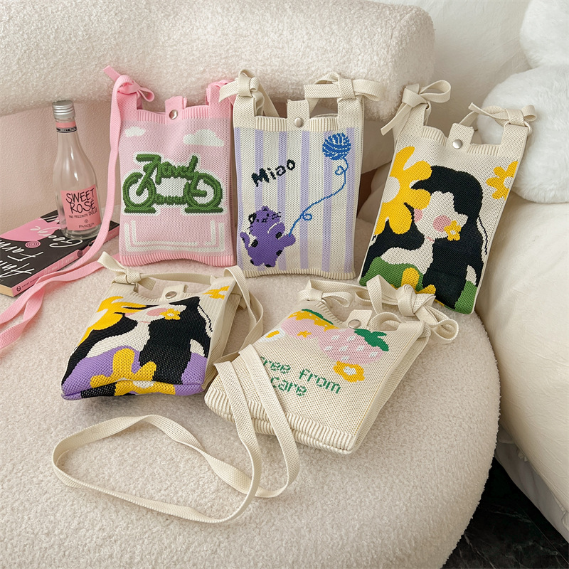 تصميم جديد متخصص لطيف كارتون صغير محبوك حقيبة الهاتف المحمول كل مباراة صغيرة محمولة للركاب حقيبة مربعة صغيرة