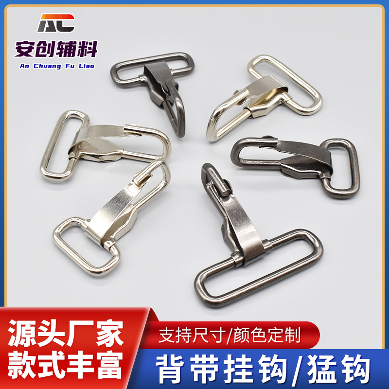 ينتج المصنعون خطافًا معدنيًا مصنوعًا من الحديد والمنغنيز 25 مم 38 مم 50 مم على ظهره خطاف حزام الكتف وحزام حقيبة الأدوات