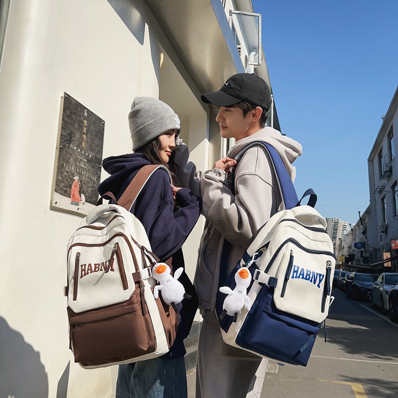 حقيبة ظهر عصرية بطباعة حروف العلامة التجارية لطلاب المدارس الثانوية العليا وطلاب المدارس الثانوية حقيبة مدرسية بسيطة للزوجين حقيبة ظهر ذات سعة كبيرة