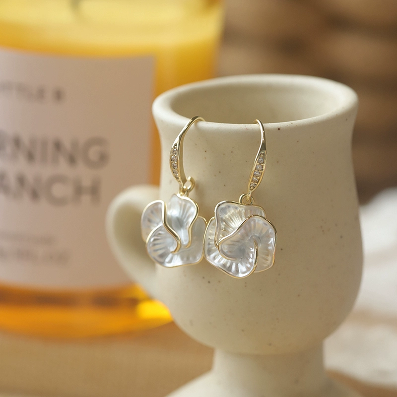 أقراط الكاميليا المزججة الحلوة 2024 نمط جديد حار الراقية أقراط مزاجه الفرنسية المتخصصة أقراط فاخرة خفيفة