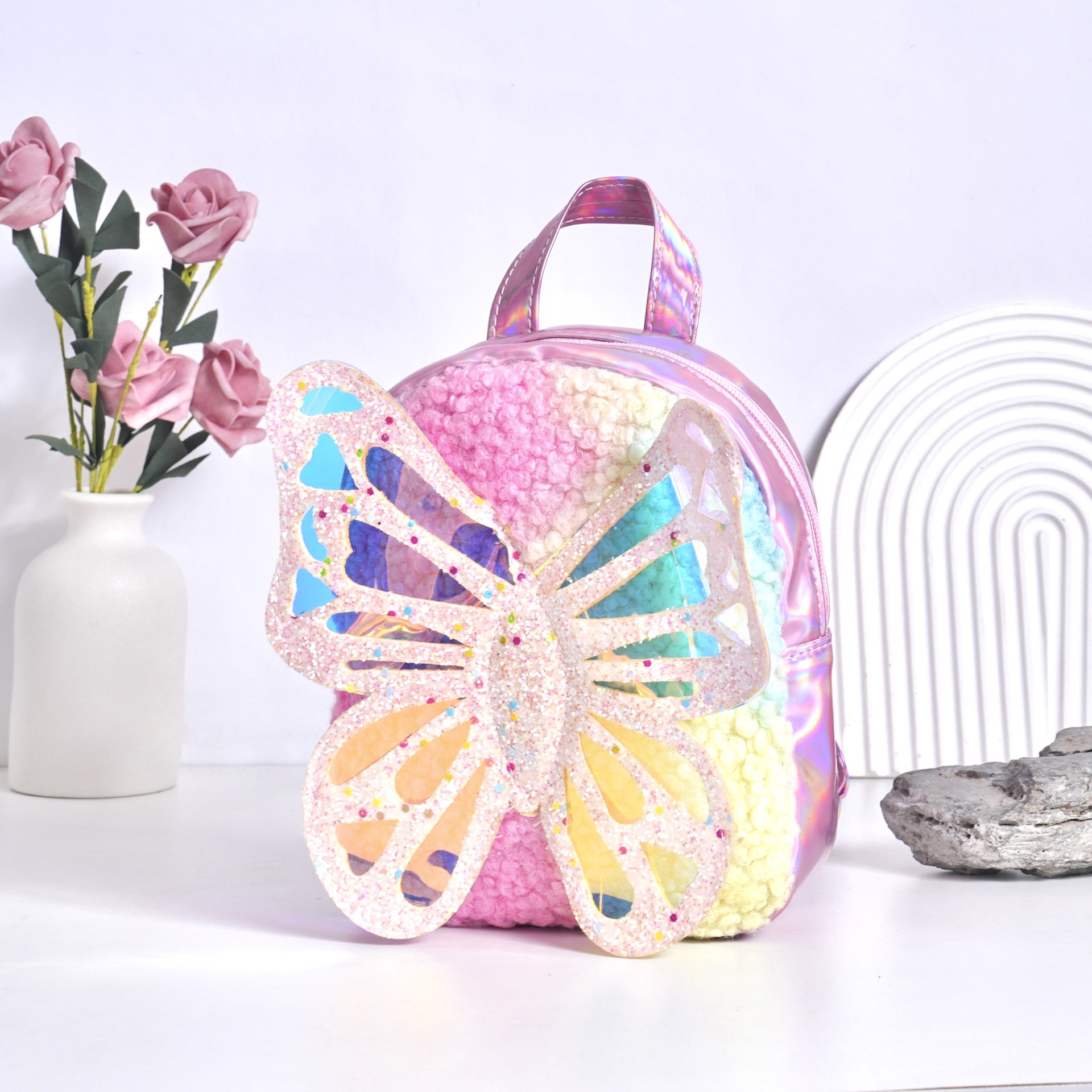 حقيبة ظهر عصرية جديدة للأطفال من القطيفة اللامعة والشفافة بالليزر على شكل فراشة وأجنحة الفراشة